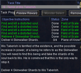 最後にIllis TaberishにSkinwalker's soul Shardを渡すとtaskが完了します。