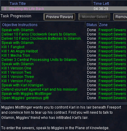 ⑩に居るMiggles Mistflingerに /hail するとtaskがupdateして、