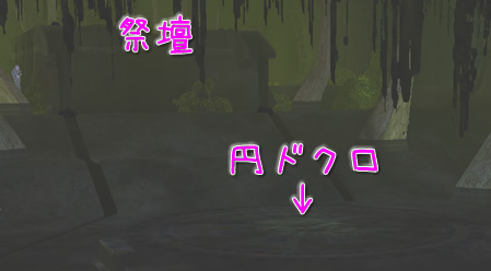祭壇の前の床に丸い円の中にドクロが描かれている場所の上で、