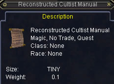 呪文が書かれた【Reconstructed Cultist Manual】をもらいます。