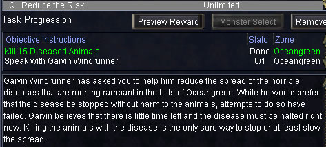 Fortに戻り、Garvin Windrunnerへ /hail するとtask完了。