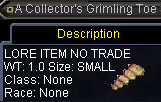 Grimling ForestのgrimilingからA Collector's Grimling Toeをloot。