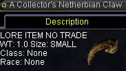 Netherbian LairのNetherbianからA Collector's Netherbian Claw をloot。