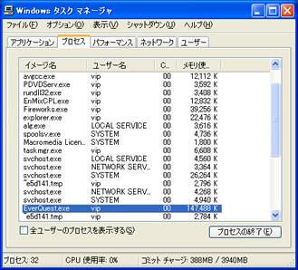 【プロセス】タブを選択して