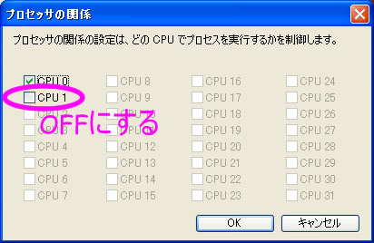 【CPU 1】 のチェックを外してくだしぃ。