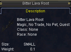 Bitter Lava Root ×1本 ・・・メイン通路の中央の穴ぐらみたいな中に生えています。