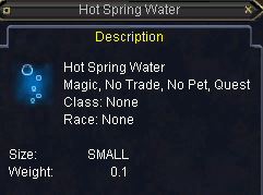 Hot Spring Water ×1杯 ・・・キノコcaveの青い泡がでている水たまりをclickしてloot。