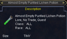 Almost Empty Purified Lichen Potionを渡されます。