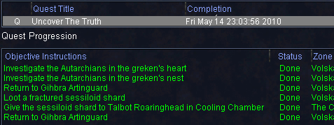 Volska's Huskに戻り、Gihbra Artinguardに /hail するとtaskが完了します。
