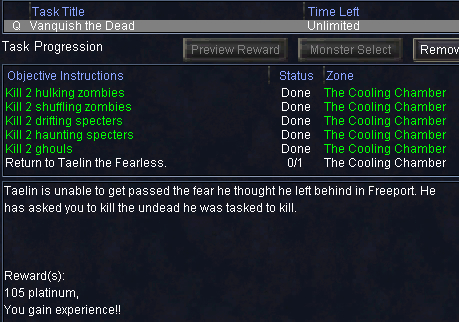 すべてkillできたらTaelin the Fearlessに /hail するとtask完了です。