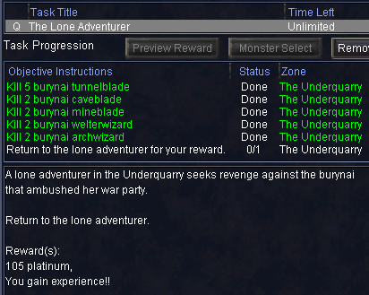 すべてkillできたら、a lone adventurerに /hail するとtask完了です。