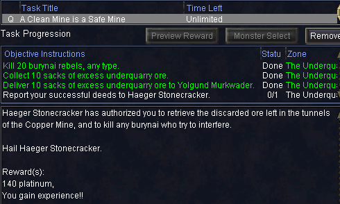 最後にHaeger Stonecrackerに /hail すればtask完了です。