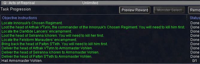 その後、Armsmaster Vohlenに /hail するとtaskが完了します。