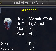 Arthak V`TyrinをkillしてHead of Arthak V`Tyrinをlootします。