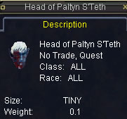 Paltyn S`TethをkillしてHead of Paltyn S'Tethをlootします。