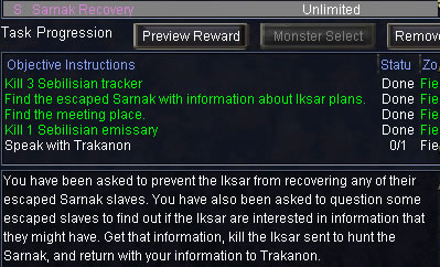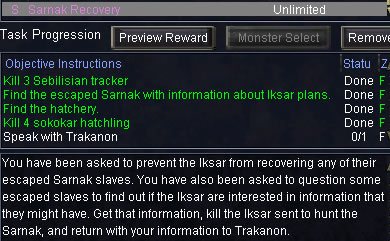 ※ 【Sarnak Recovery】は3種類あります。 もらえるtaskは3種類からrandomです。