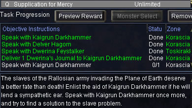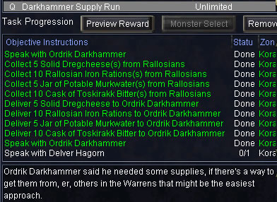 mapの場所に居るKaigrun Darkhammerに /hail するとtaskがupdateします。
