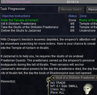 JarzarradへSkull of a Shiliskin Praetorianを6個渡すとtask完了。