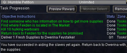 Fresh SuppliesをDwerina Feystalkerに渡すとtask完了です。