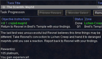 a crazed mephitをkillするとtaskがupdateされます。